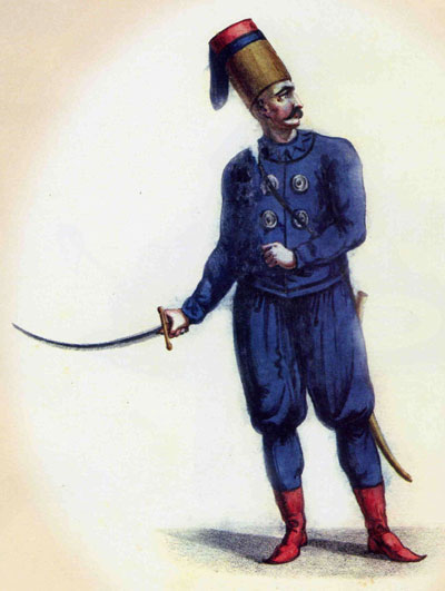 Murat the First sits with his legs crossed.